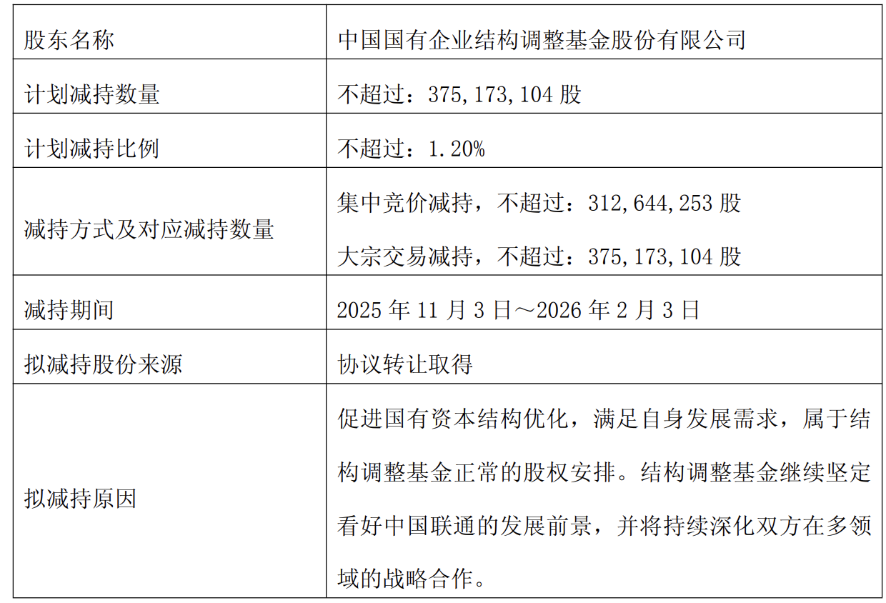 中国联通:控股股东国企结构调整基金拟减持不超过1.20%公司股份   中国联通:控股股东国企结构调整基金拟减持不超过1.20%公司股份
