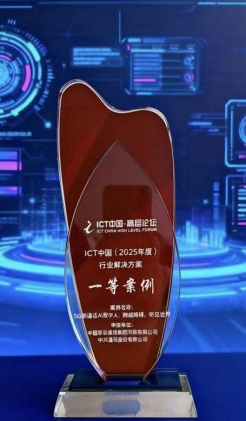 河南移动“5G新通话AI数字人”荣获ICT中国(2025)案例评选一等奖   河南移动“5G新通话AI数字人”荣获ICT中国(2025)案例评选一等奖