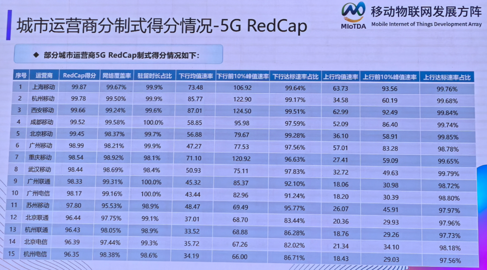 5G RedCap网络质量前十强,中国移动独占前八!   5G RedCap网络质量前十强,中国移动独占前八!