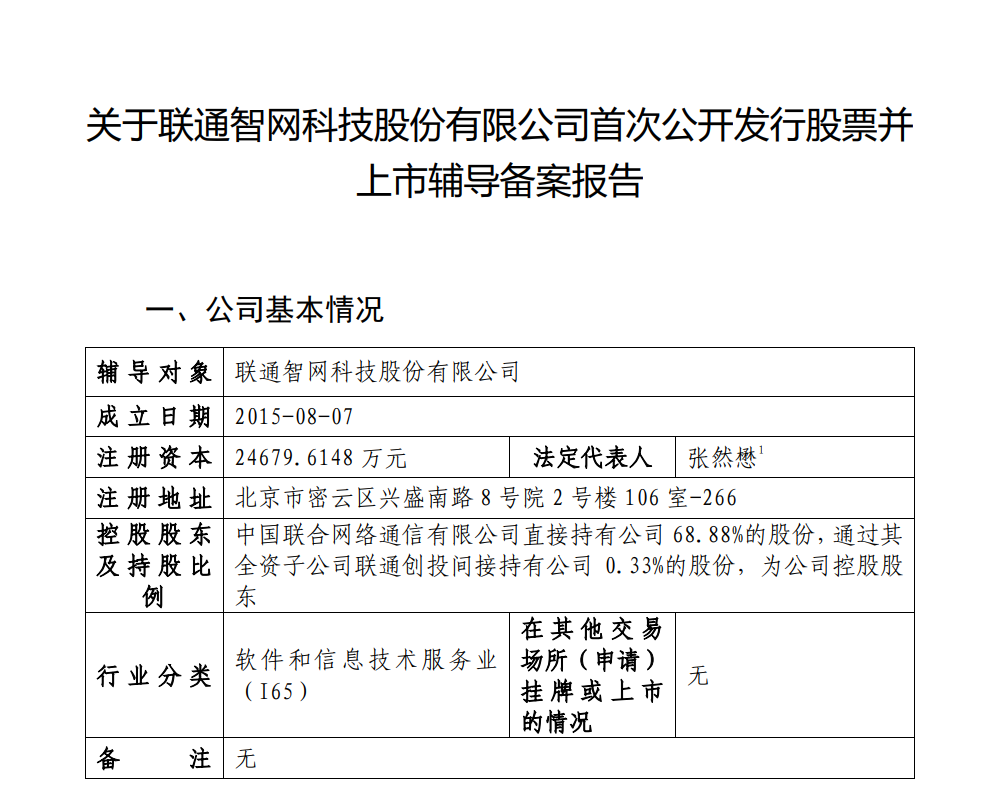 联通智网已启动上市辅导   联通智网已启动上市辅导