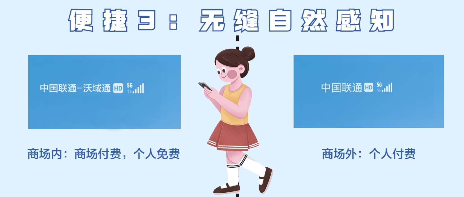 通过5G沃域通创新解决方案,用户抵达商旅区域后,可以无缝接入商旅5G专网,免费使用本地商旅场景的高速5G网络及专属应用。商旅企业的线下商铺预期可以自动感知授权用户手机号码,结合5G网络的定位能力,将实现精准推送优惠券、促销活动、会员服务等各类信息,帮助商超引流,赋能线下经济,提升实体店铺的活力,促进疫情后消费复苏。