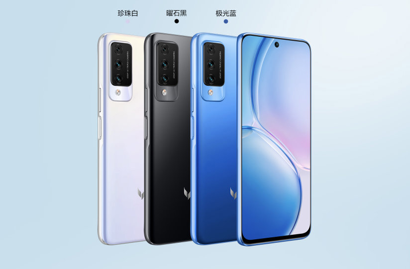 麦芒 十年臻爱版拥有极光蓝、曜石黑、珍珠白三款配色,采用后置竖向三摄,前置居中挖孔设计,厚 8.4mm,重 179g。