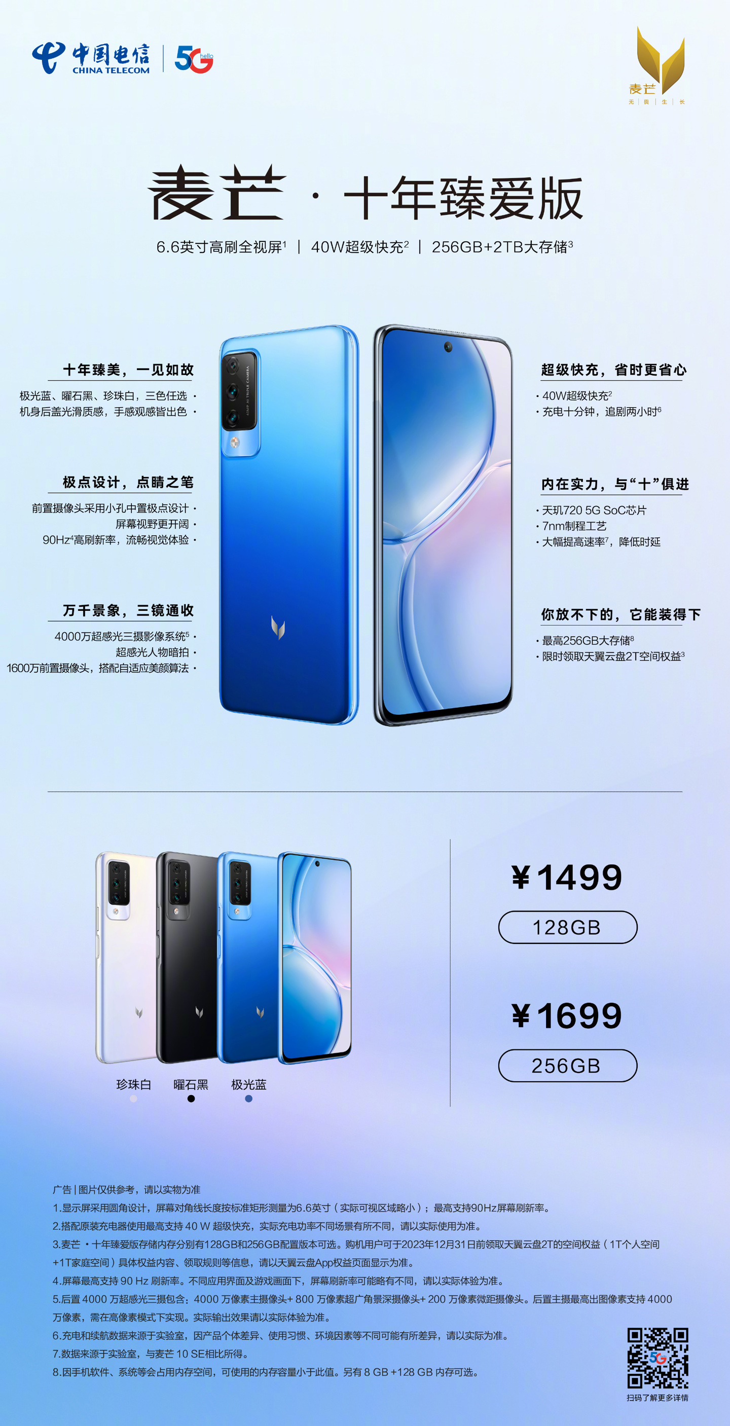 1449 元起,中国电信麦芒 十年臻爱版今日开售:搭载天玑 720,赠送 2TB 天翼云盘