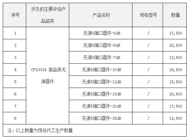 据此前中国电信发布的预审公告显示,本次中国电信研究院无源5端口器件代工项目采购的产品为CP10024高品质无源器件,采购总量为130000套。具体采购详情如下: