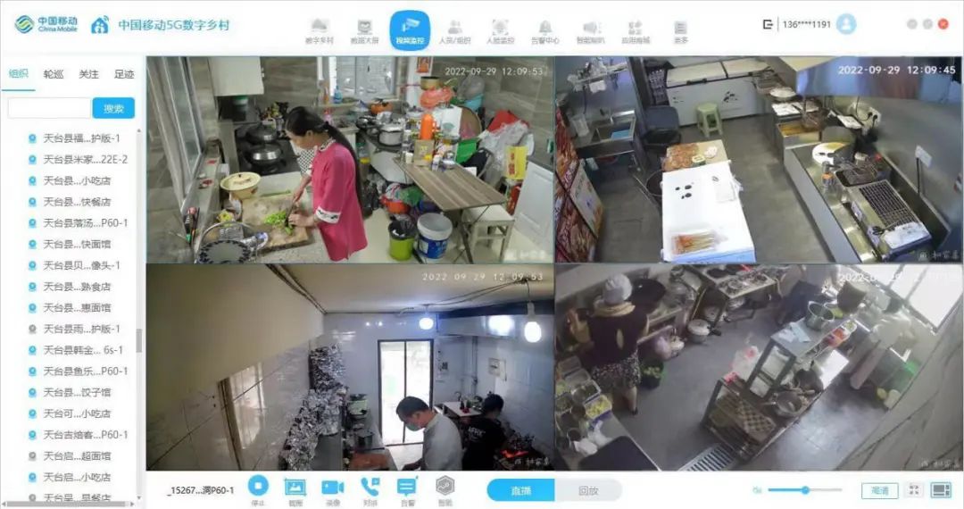 为了让民宿更有品质感与竞争力,村子里和浙江移动天台分公司共同合作,在各家的后厨均安装了摄像探头,并接入“阳光后厨”后台和“智慧烟感”系统。