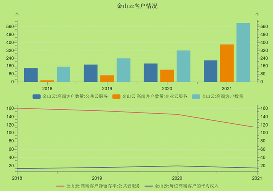 根据招股书,公有云服务优质客户的净客户收入留存率分别为155%、146%与114%,近几年处于下滑状态。虽然客观来讲,高端客户数有所增长,但高端用户平均收入并未有增长,甚至有所下滑。这也侧面公司说明其实在这块深耕的优势还是不够。