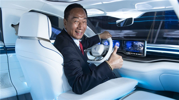 富士康老板郭台铭,也直接坐上了自家造的车,可以说是排面十足了。