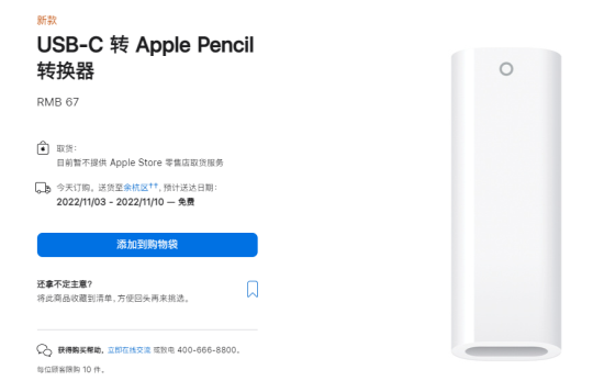 不仅是价格上涨,库克为了赚果粉的钱也是费尽心机。此次新款iPad用上了Type-C接口,并可适配第一代Apple Pencil,但后者需通过Lighting接口充电,新款iPad变成Type-C接口后,想给Pencil充电就需要一个转换器。目前,苹果官网iPad配件一栏已上架USB-C转Apple Pencil转换器,每个售价67元。