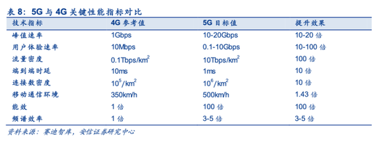 首先5G网络的高速率、低时延的特性,大幅提升了AR眼镜的使用体验。据赛迪智库对比5G与4G的关键性能指标,5G 网络下画面端到端延迟相比4G将减少10倍,这会显著减轻玩家眩晕感;5G 传输信号下用户体验速率会提升10-100倍,这可让AR眼镜直接通过无线信号进行传输,甚至直接将算力放至云端,减轻设备体积及重量。