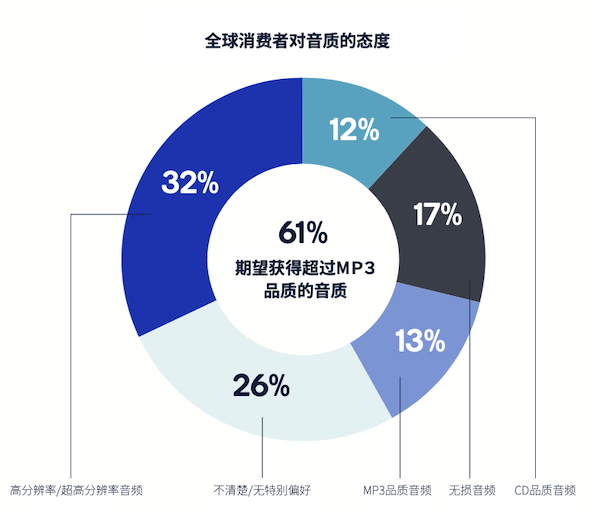 音频的人数超过以往,三分之二的受访者希望享受到超过 MP3 品质的音质。