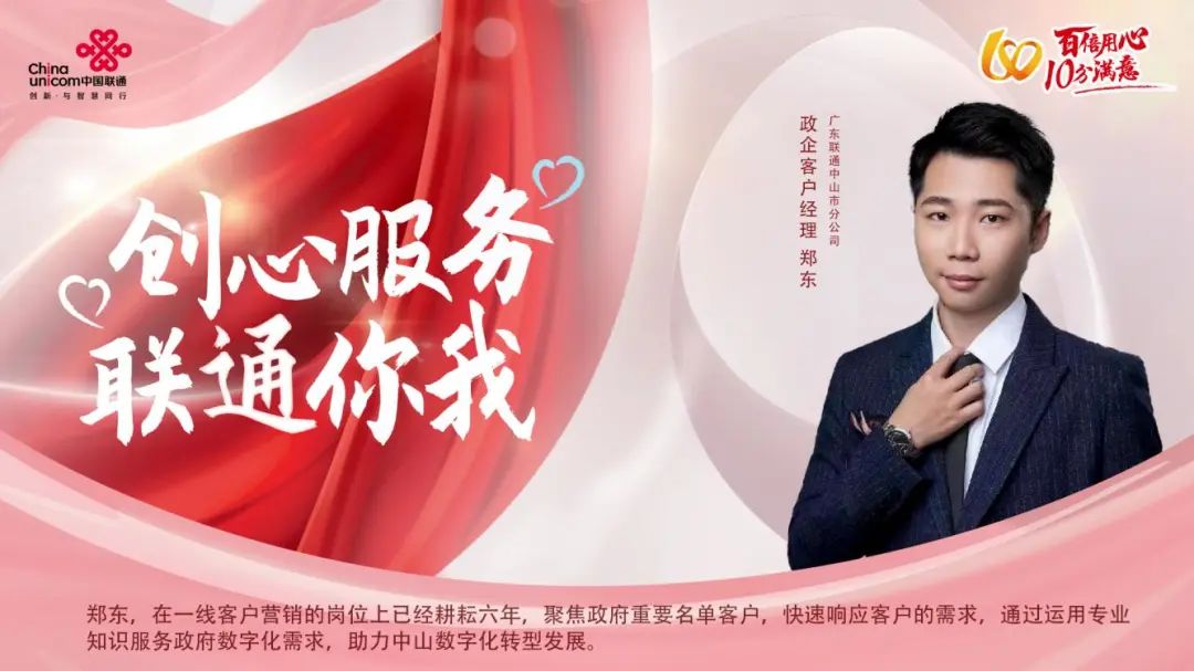 郑东,中山联通政企客户经理,在一线客户营销的岗位上已经耕耘了六年。一直围绕公司“大联接,大计算,大数据,大应用,大安全” 的五大主责主业,聚焦政府重要名单客户,快速响应客户的需求,高效处理问题,通过运用专业知识服务政府数字化需求,助力中山数字化转型发展。