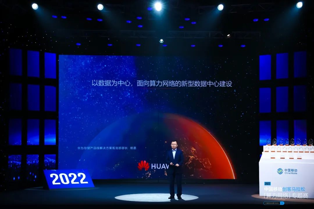 在决赛现场,华为公司参与中国移动算力网络试验网(CFITI)百灵鸟计划启动仪式,华为存储产品线解决方案规划部部长杨嘉受邀参加并发表“以数据为中心,面向算力网络的新型数据中心建设”主题演讲。