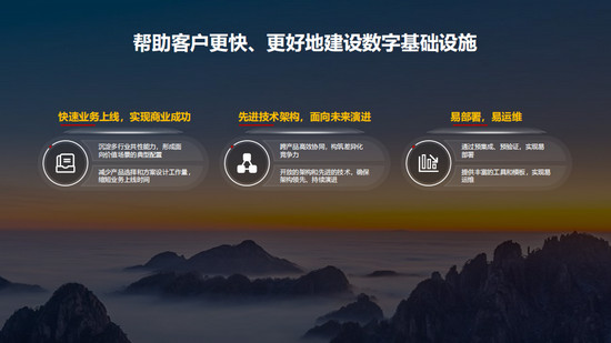 产品组合方案的总体目标是帮助客户更快、更好地建设数字基础设施。具体的价值体现在三个方面: