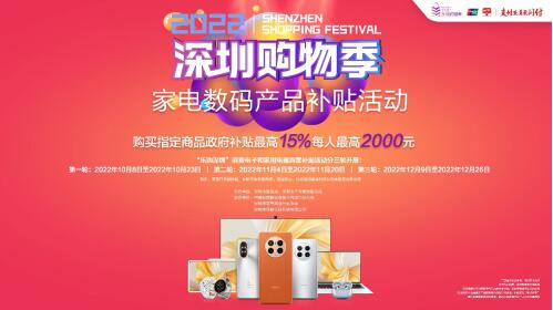 华为授权体验店(世界之窗益田假日广场)等深圳线下门店现在还参与由深圳市商务局、深圳市工业和信息化局主办的“2022深圳购物季家电数码产品补贴活动”,购买指定商品政府补贴最高15%每人最高2000元。(点击以下链接了解活动详情http://commerce.sz.gov.cn/xxgk/qt/tzgg_1/content/post_10155410.html)