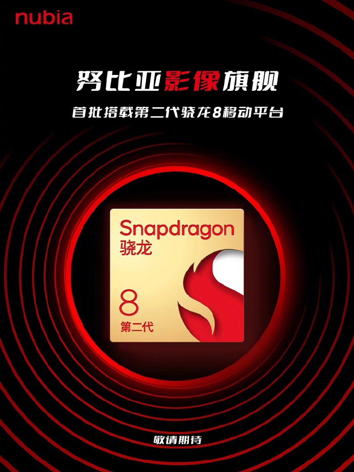 新品即将到来,中兴及旗下努比亚官宣新旗舰将首批搭载第二代骁龙 8 移动平台