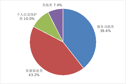 2022年第三季度,互联网信息服务投诉平台共收到互联网用户投诉39.36万件。其中,客服渠道类投诉17.01万件,占比43.2%;服务功能类投诉15.50万件,占比39.4%;个人信息保护类投诉3.92万件,占比10.0%;其他类投诉2.93万件,占比 7.4%。在接入平台的150家互联网企业中,方正宽带、中公教育、虎扑等5家企业投诉处理及时率未达到95%的指标要求(详见附件2),小红书、同程艺龙、贝壳找房、去哪儿网等投诉量增长较快,工业和信息化部已督促相关企业改进服务,解决用户反映的问题。