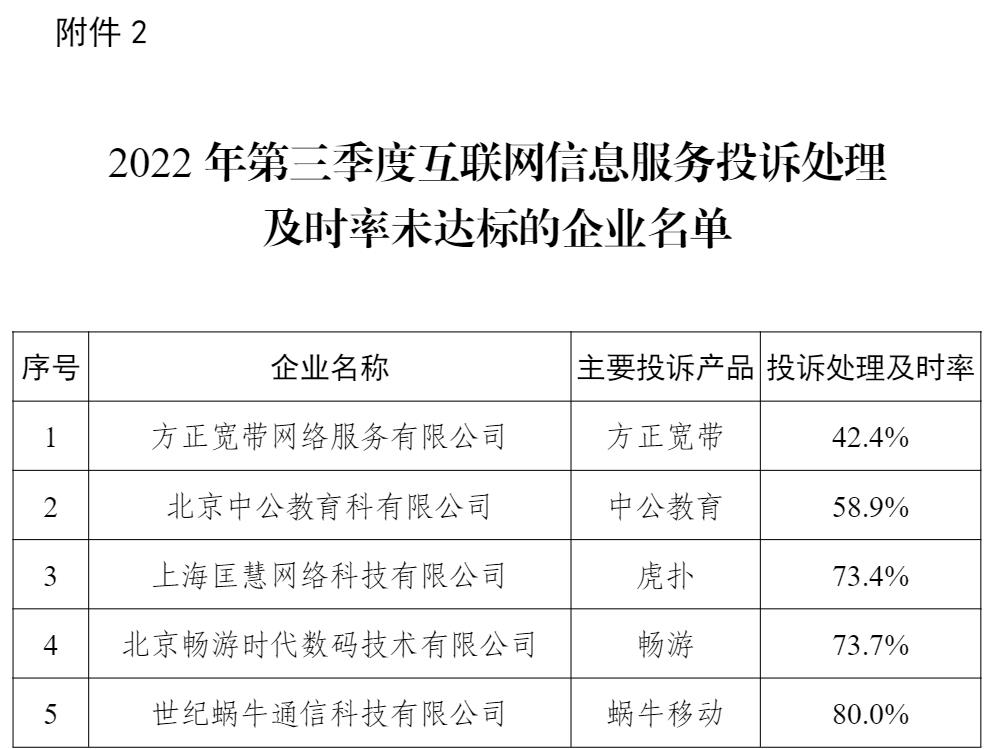 2. 2022年第三季度互联网信息服务投诉处理及时率未达标的企业名单