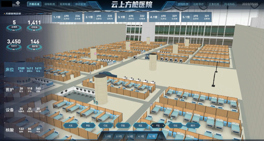 在广东,面对方舱医院每日收治大量感染者的医疗服务之“险”,中国联通部署“云上方舱”,借助5G网络的泛在接入特性,现场部署了10大类1500余台智能终端实现全流程精准、安全防控。借助联通自研的“5G+北斗”服务平台和无人化服务体系,已统一纳管舱内1500多台智能设备,将人员、样本、物资的配送流程压缩至30分钟以内,解决了医疗系统负担之“重”,极大提升了医护的工作效率。