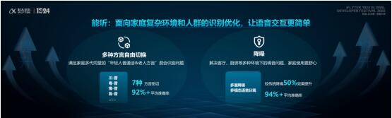 其一,面向家庭复杂环境和人群的识别优化,让语音交互更简单。科大讯飞在语音识别方面取得关键技术突破,通过增强模型和识别模型的深度耦合,实现高噪、远场混响等各种复杂环境下的高精度语音识别。即使在客厅和厨房这种高噪音复杂场景下,升级优化的语音识别可以精准识别到家庭用户的指令词。同时,iFLYHOME OS 2.0针对各种方言和口音也能实现复杂场景高鲁棒性语音识别,支持7种方言自由切换,满足家庭多代同堂的“年轻人普通话&老人方言”混合识别问题。