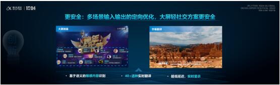 其三,多场景输入输出的定向优化,大屏轻社交方案更安全。iFLYHOME OS 2.0上线大屏轻交互解决方案,可实现大屏弹幕和大屏字幕翻译功能。针对大屏弹幕功能,上线组合敏感词识别、基于语义的敏感内容识别,敏感词过滤保障大屏内容安全。另外,字幕在线翻译支持中文和英语等四十多个语种的互相翻译,实施率和准确率高达99%,让大屏视频观看实时无障碍。