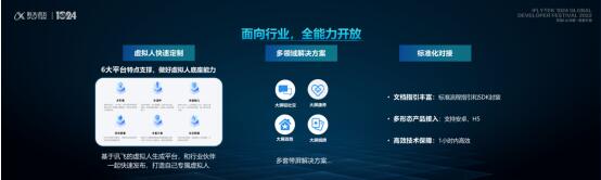所有2.0的功能也面向全行业做全能力的逐步开放,包括给合作伙伴有标准化的虚拟人快速定制系统,还有面向多领域的垂直方向上的能力下沉,包括刚才讲的大屏轻社交、大屏康养、大屏政务、大屏教育等多个领域,都可以做到很好的语音语义、多模态识别支持。同时针对合作伙伴,也把整个接口进行了标准化的对接,使得我们的各项开发工作可以更加高速、高效、快捷。