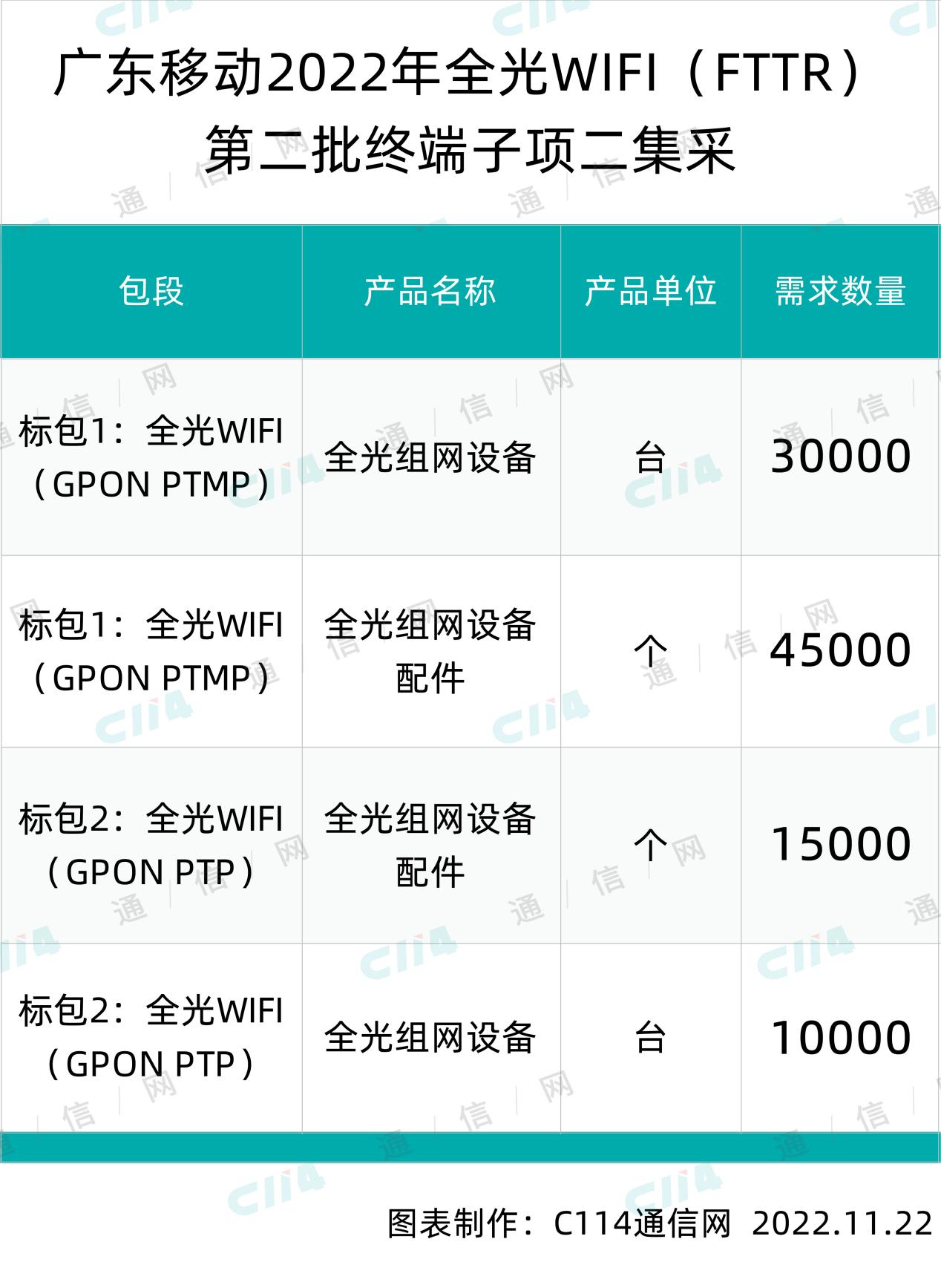 据此前广东移动发布的集采公告显示,本次采购内容主要包括:全光WIFI(GPON PTMP)和全光WIFI(GPON PTP)。产品功效方面,需满足以下要求: