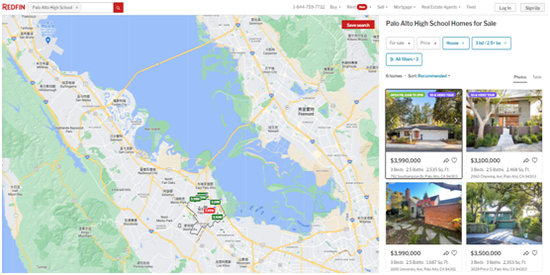 Palo Alto High School周边学区房价格 图片来源:房产中介公司Redfin截图