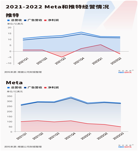 Meta面临的困境更甚。该公司今年第三季度财报显示,其绝大部分收入都来自于广告,占公司总收入的98.2%,当季广告收入为272亿美元,同比下滑近4%。