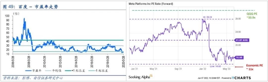 但资本市场却是另一番风景,2015年之后,百度的PE时常徘徊在15倍左右。而今年2月开始,Facebook的PE也急剧下滑到15倍左右。