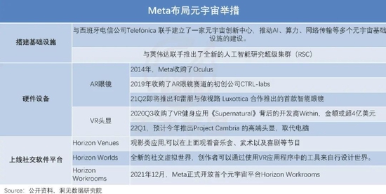 目前来看,Facebook的元宇宙布局主要有三条线:搭建基础设施;推出AR眼镜、VR头显等硬件设备;上线社交软件平台Horizon Venues等。