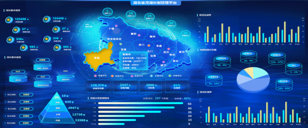 湖北联通协助湖北省水利厅打造“湖北省河湖长制管理信息系统平台”,为省市县乡村五级河湖长工作管理、河湖长制工作办理提供数据支撑。