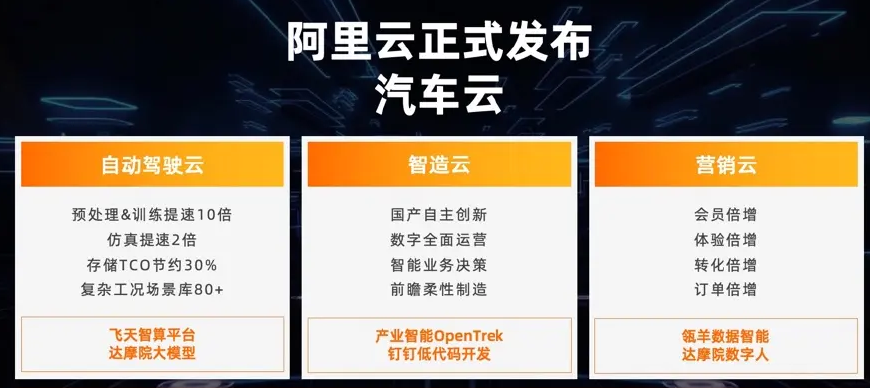 还有一个原因也不能忽视,传统车企的生产和销售已经进入发展瓶颈期,在市场竞争惨烈、利润摊薄后,车企为追求利润,降本增效是必然选择,而经过几年的实践证明,云计算能够为车企的降本增效提供有效解决方案。阿里云,基于自身强大的算力,已经成为众多车企的合作伙伴。