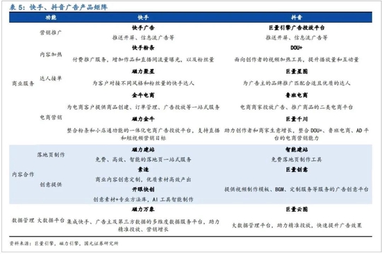 当然,商业化更早的抖音,也是类似的完善轨迹。可以看到,截止目前,抖快已经形成商业服务、内容合作和数据管理一整套产品矩阵。