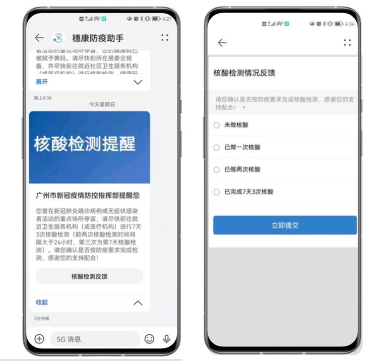 “使用5G消息+AI智能语音二次催办,一个小时内完成了2万人次的触达和信息收集工作,节省了600个社区人员的工作量,使得我们的疫情排查工作更加及时和高效!”广州天河区一名街道防疫工作人员介绍道。