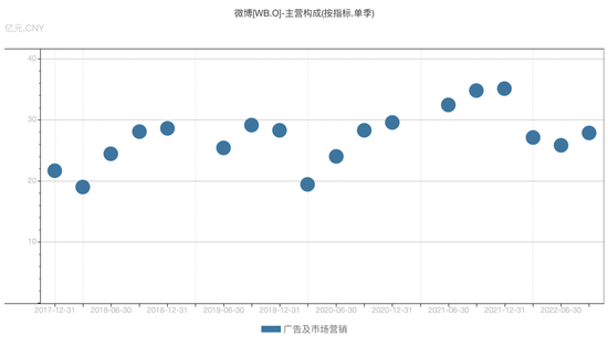 微博、汽车之家这些中腰部平台的回暖,也许更有指标价值。当行业水位整体上升,预算才能漫灌到更多的角落。可以看到,即便来自关联方阿里巴巴的广告营销收入逐季下降,微博的广告营收走出了自己的趋势,本季收入27.93亿,环比增长了7.92%。