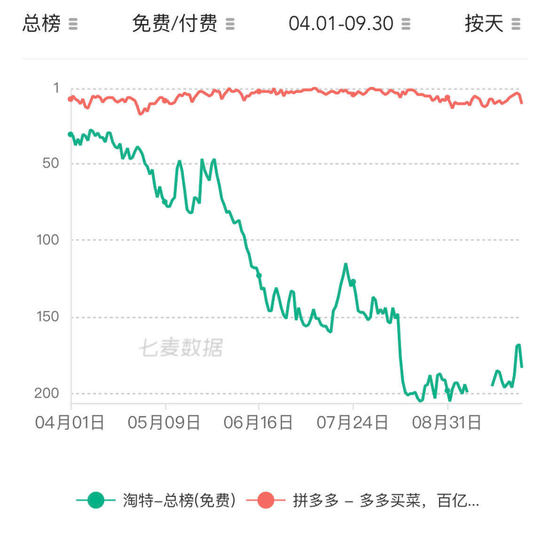 淘特的AppStore排名过去两个季度明显下降 应该与补贴退坡、营销缩减有关