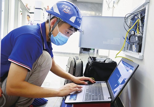 中国电信四川公司网络工程师在架设宽带网络。