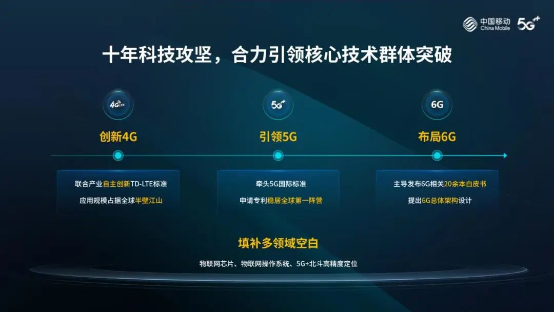 四是十年科技攻坚,合力引领核心技术群体突破。坚持十年磨一剑,推动信息技术演进升级,带动我国自主创新的4GTD-LET占据全球半壁江山;牵头5G国际标准项目,申请5G专利数稳居全球运营商第一阵营;主导发布6G网络架构等20余本白皮书,研发自主可控的物联网芯片、物联网操作系统,建成全球最大的5G+北斗高精度定位系统,填补多领域产业空白。