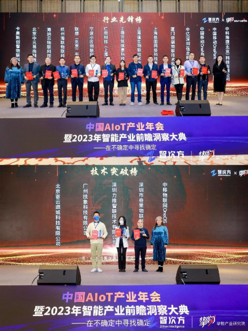 近日,由智次方·物联网智库联合挚物产业研究院举办的中国AIoT产业年会在深圳举行,现场汇集了物联网行业众多明星企业和单位,中移物联网有限公司(以下简称中移物联)受邀参加本次产业年会。智次方面向物联网行业同仁正式发布《2023中国AIoT产业全景图谱》和《2023中国5G产业全景图谱》,邀请大家共同见证2022AIoT新维奖各项荣誉榜单。中移物联在智能领域的多项成果被图谱收录,并在现场举行的中国AIoT新维奖颁奖典礼一举揽获“行业先锋榜”“技术突破榜”等多项荣誉奖项。