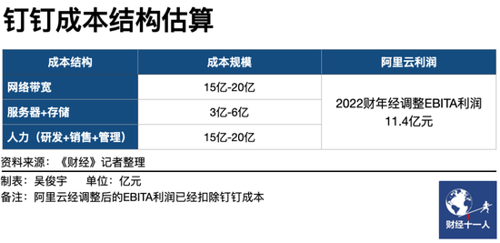 目前,钉钉业绩并表在阿里云中,阿里财报显示,阿里云2022财年(2021年4月-2022年3月)经调整后的EBITA利润为11.4亿元。也就是说,钉钉每年支付给电信运营商的网络带宽成本规模,超过阿里云的全年利润。(注:阿里集团2022财年报告中,阿里云经调整后的EBITA利润已经扣除钉钉成本。此处为便于理解,以阿里云利润与钉钉网络带宽成本做对比)。