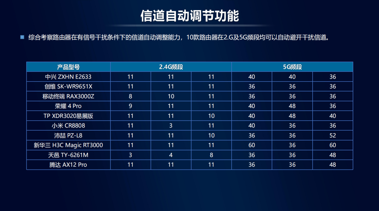 信道自动调节功能:12款路由器在2.G及5G频段均可以自动避开干扰信道。