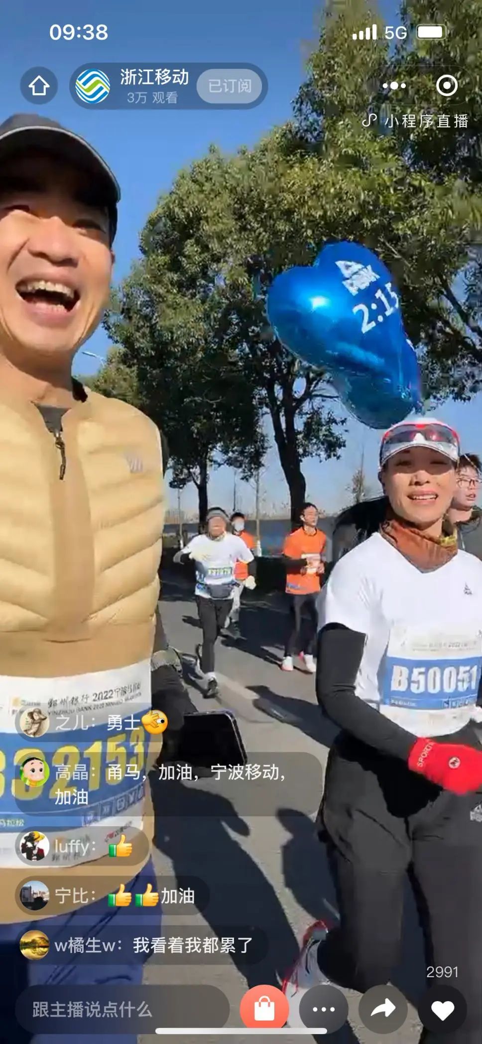 此次甬马,宁波移动通过将5G网络技术与第一视角直播深度融合,为跑迷们带来了更好的观赛体验,直播总观看人数突破3万,点赞人数突破2.8万。