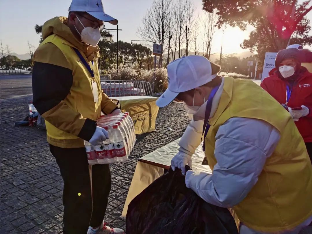 12月18日早上5时,十余名宁波移动“甬燃”青年志愿者在团市委统一带领下,不顾严寒前往比赛地点,根据前期任务分配,迅速投身到“甬马”比赛的赛前准备工作中。分发物资、扫码测温、核对信息、引导解答……各项工作有条不紊。比赛开始后也并没有停下忙碌的脚步,只要参赛选手有需要,他们便会立刻提供帮助。