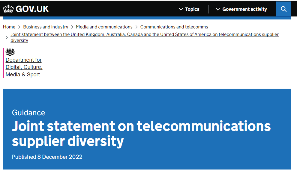 近日,英国、澳大利亚、加拿大和美国四国共同发布了关于电信运营商多元化的联合声明。