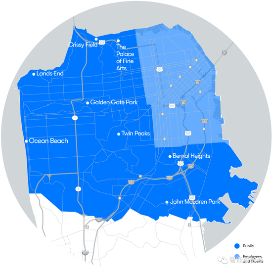 旧金山市民现阶段可以免费乘坐Waymo无人车,但市中心核心区域仅限Waymo内部员工乘坐。
