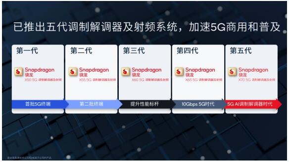 高通一直积极推动5G技术的研发、商用和规模化拓展。目前,高通已经推出了五代领先的骁龙5G调制解调器及射频系统,将系统级解决方案的优势和最前沿的5G技术带给全球市场,推动5G向更丰富的终端和应用场景普及。以最新的骁龙X70为例,它不仅是全球首个集成AI处理器的5G调制解调器及射频系统,更支持从600MHz到41GHz的全球5G商用频段,以及丰富的频谱聚合功能和特性组合,带来极致的灵活性,支持终端厂商设计满足全球不同区域的网络需求的终端,支持全球运营商最大限度地利用频谱资源,面向消费者和企业部署最优5G网络。