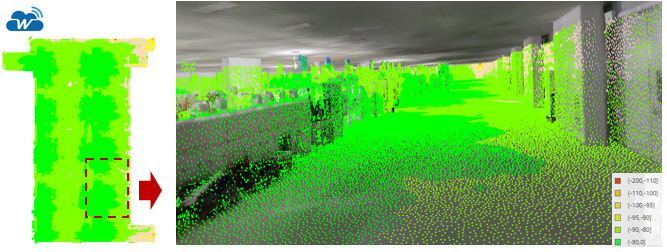 基于激光点云的室内环境数字还原:通过对工厂环境进行激光扫描,实现3D实景高清环境建模,完成工厂结构还原;自动识别工厂内生产线设备、货架物料、车辆物品、空调管道等环境信息及材质信息,精准还原真实无线传播环境,精度可达厘米级。