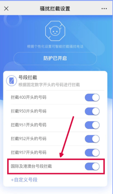 IT之家获悉,境外来电诈骗风险较高,如果没有接听或拨打国际电话的需求,建议开启【国际及港澳台号段拦截】服务。点击公众号底部【业务设置】-【骚扰拦截设置】,进入骚扰拦截设置页面中,找到【国际及港澳台号段拦截】点击开启拦截。