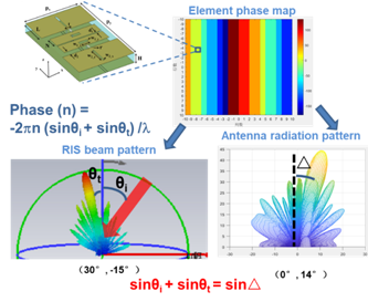 RIS硬件仿真结果显示入射角、反射角与单元相位之间的关系