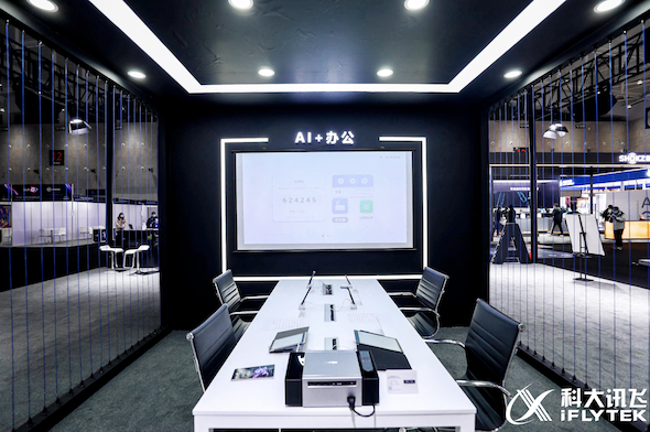 科大讯飞展位(Hall 12 Booth 1338)以用户真实场景为逻辑进行了搭建设计,包括办公室、跨语言商谈等,现场观众和媒体能够直观快速地体验到科大讯飞在AI办公领域的核心技术应用。